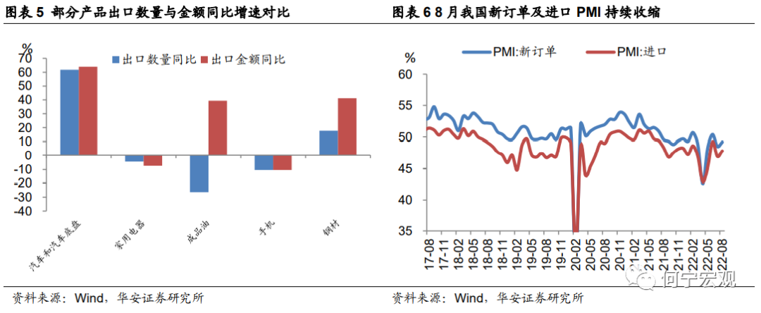 4)8月出口增速较7月大幅回落,反映前期出口受阻导致的脉冲式修复已经结束,叠加外需走弱的影响,出口增速大幅下降。