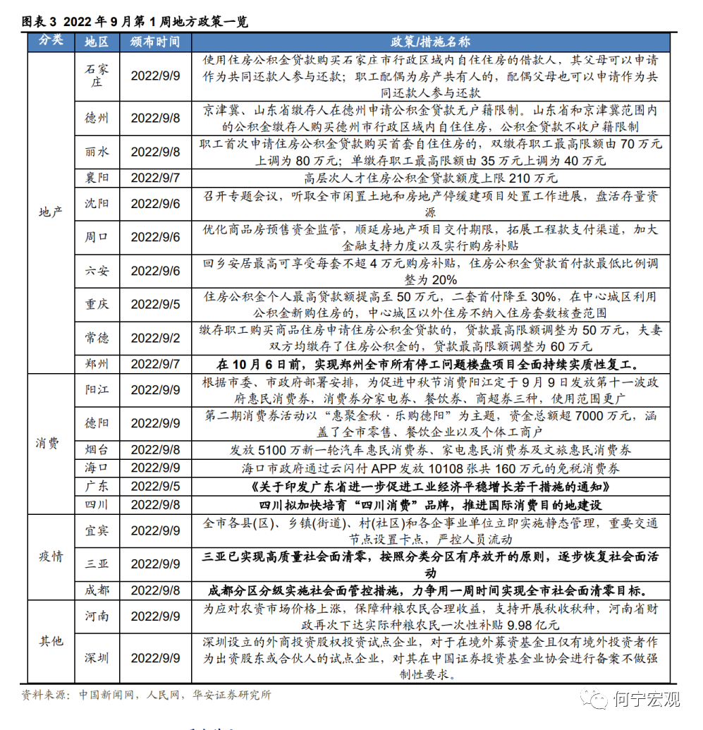 本周(9月2日-9月9日)地方政策方面,重点聚焦地产需求端放松、促消费稳增长、常态化疫情防控等。