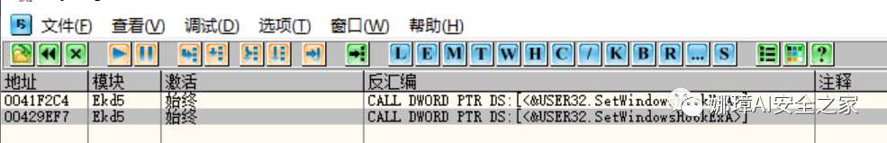 SetWindowsHookExA:安装钩子消息函数