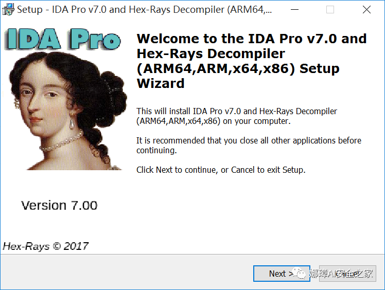 IDA Pro是点击下一步傻瓜式安装,安装成功会后会显示两个运行程序“IDA Pro(32bit)”和“IDA Pro(64bit)”,分别对应32位和64位程序的分析。IDA支持常见的PE格式,DOS、UNIX、Mac、Java、.NET等平台的文件格式。