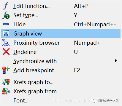 IDA View包括两种浏览模式,一种是Text View,一种是Graph View,右键能够相互跳转。