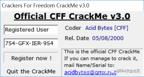 这个案例是破解Crakeme中的Afkayas.1.EXE,这是典型的字符串序列破解程序,根据name的值推出serial。