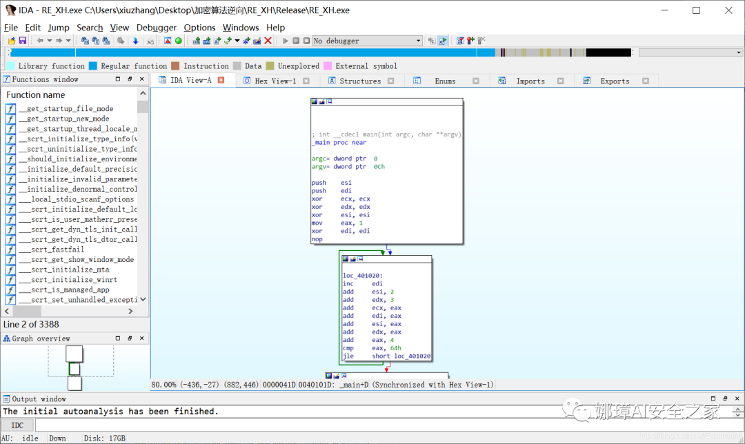 同样,使用IDA也是可以进行逆向分析的,打开新生成的逆向分析工具如下所示。
