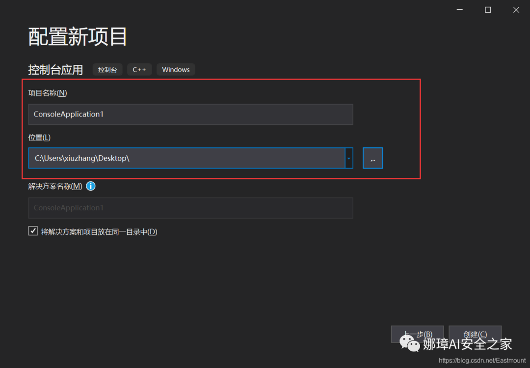 第一步,创建Windows控制台程序。