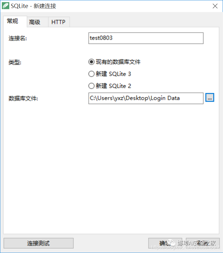 第五步,输入连接名如“test0803”,并导入本地的“Login Data”数据。
