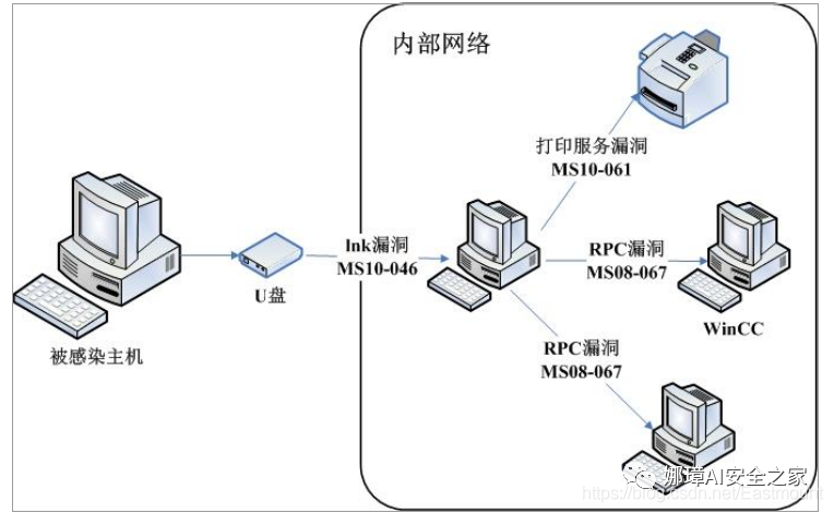 最后补充“摆渡”知识点,这种攻击行为经常发生在一些具有特殊目的病毒程序身上。期望通过可移动的媒介来渗透一些平时不联网的电脑中,并从中获取数据,利用摆渡的方式植入病毒或木马到内网,比较典型的案例就是Stuxnet(震网事件)。