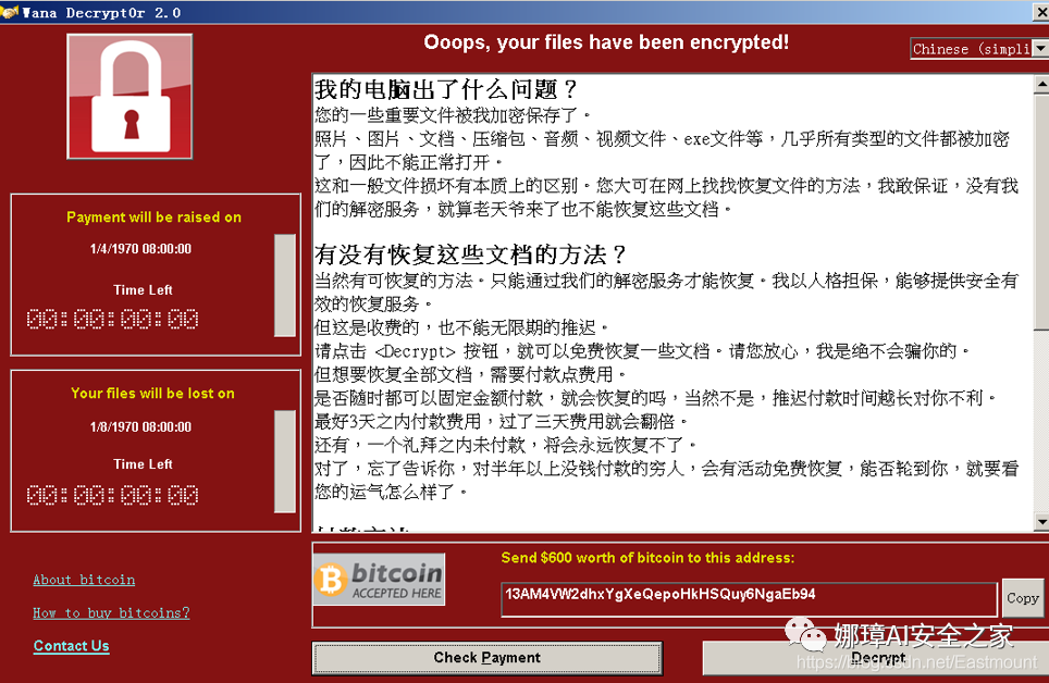 2017年5月12日,WannaCry蠕虫通过永恒之蓝MS17-010漏洞在全球范围大爆发,感染大量的计算机。WannaCry勒索病毒全球大爆发,至少150个国家、30万名用户中招,造成损失达80亿美元,已影响金融、能源、医疗、教育等众多行业,造成严重的危害。