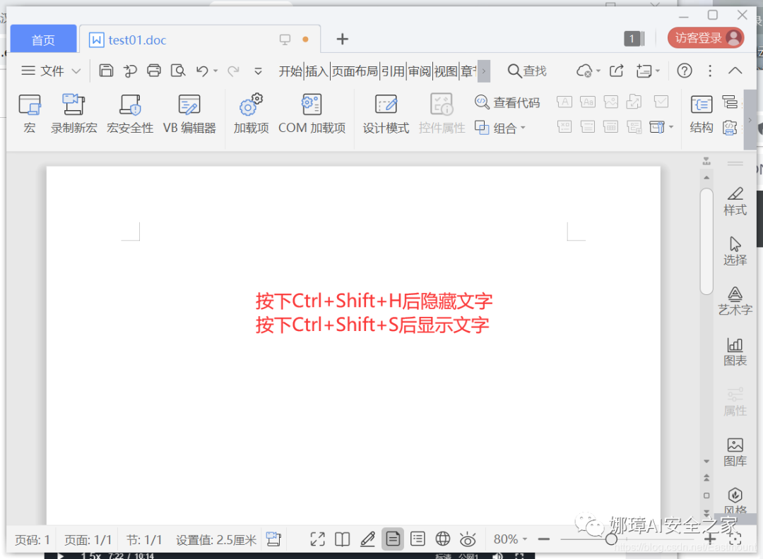 此时,功能已经实现,当我们按下“Ctrl+Shift+H”时,文字隐藏,按下“Ctrl+Shift+S”时文字显示。