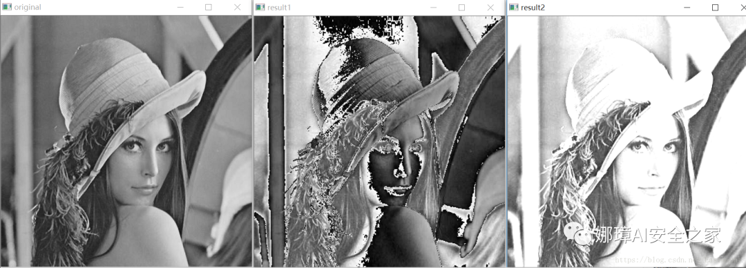 输出结果如下,其中result1为第一种方法,result2为第二种方法,白色点255更多。