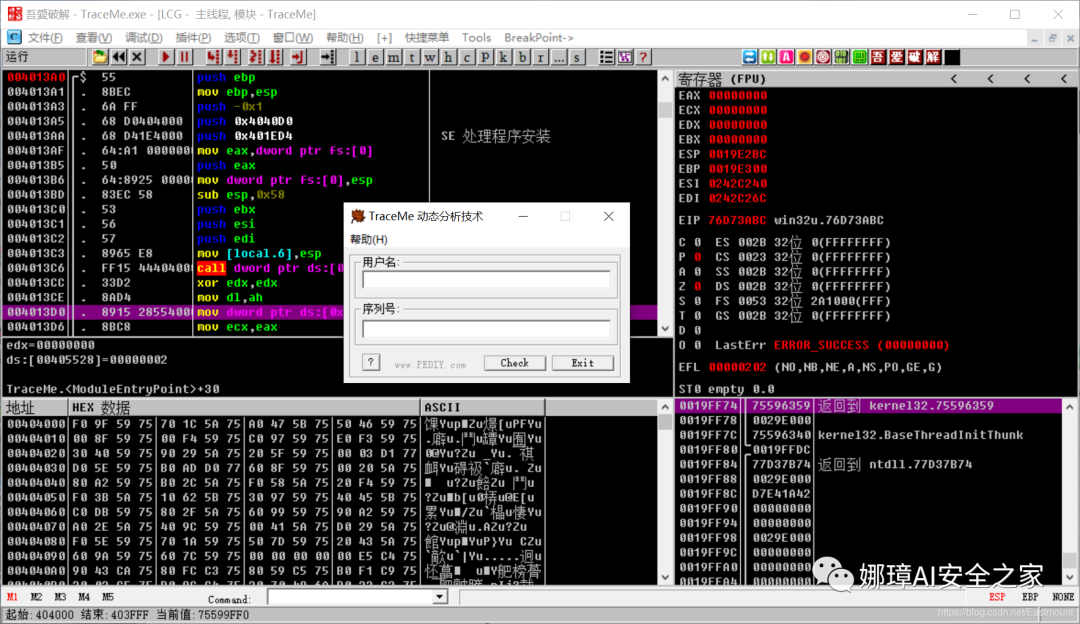 [系统安全] 二十三.逆向分析之OllyDbg动态调试复习及TraceMe案例分析