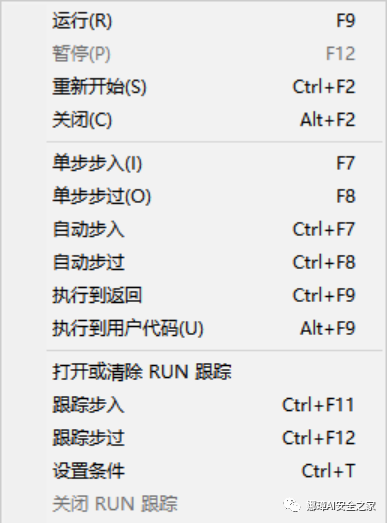 执行到返回,按下此键会执行到一个返回指令时暂停,常用于从系统领空返回到我们调试的程序领空。在调试程序时,按下CTRL+F9会一直运行程序,直到一个RETURN返回,比如我们进入下图所示的子程序,会运行至RETN 10。