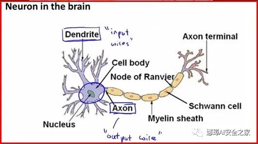 神经细胞利用电-化学过程交换信号。输入信号来自另一些神经细胞。这些神经细胞的轴突末梢(也就是终端)和本神经细胞的树突相遇形成突触(synapse),信号就从树突上的突触进入本细胞。
