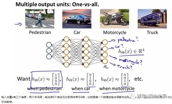 最后给大家看一个利用神经网络对图片进行分类的例子:过程就不详细论述了,图片很清晰,对人、汽车、摩托车、卡车进行图片识别,而具体的隐藏层函数需要大家去深入研究,加油!