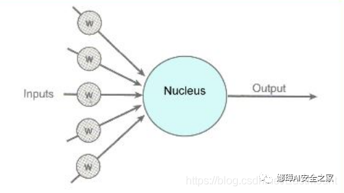进入人工神经细胞的每一个input(输入)都与一个权重w相联系,正是这些权重将决定神经网络的整体活跃性。假设权重为-1和1之间的一个随机数,权重可正可负(激发和抑制作用)。