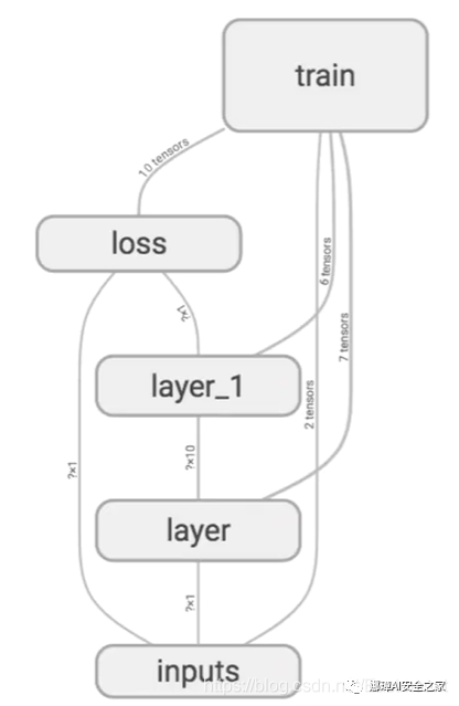 将不同的对象及操作放在由tf.name_scope()指定的区域中,便于在tensorboard中展示清晰的逻辑关系图,这点在复杂关系图中特别重要。