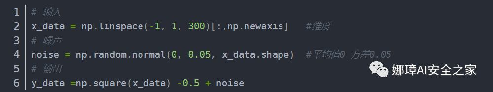x_data = np.linspace(-1, 1, 300)[:,np.newaxis] #维度
