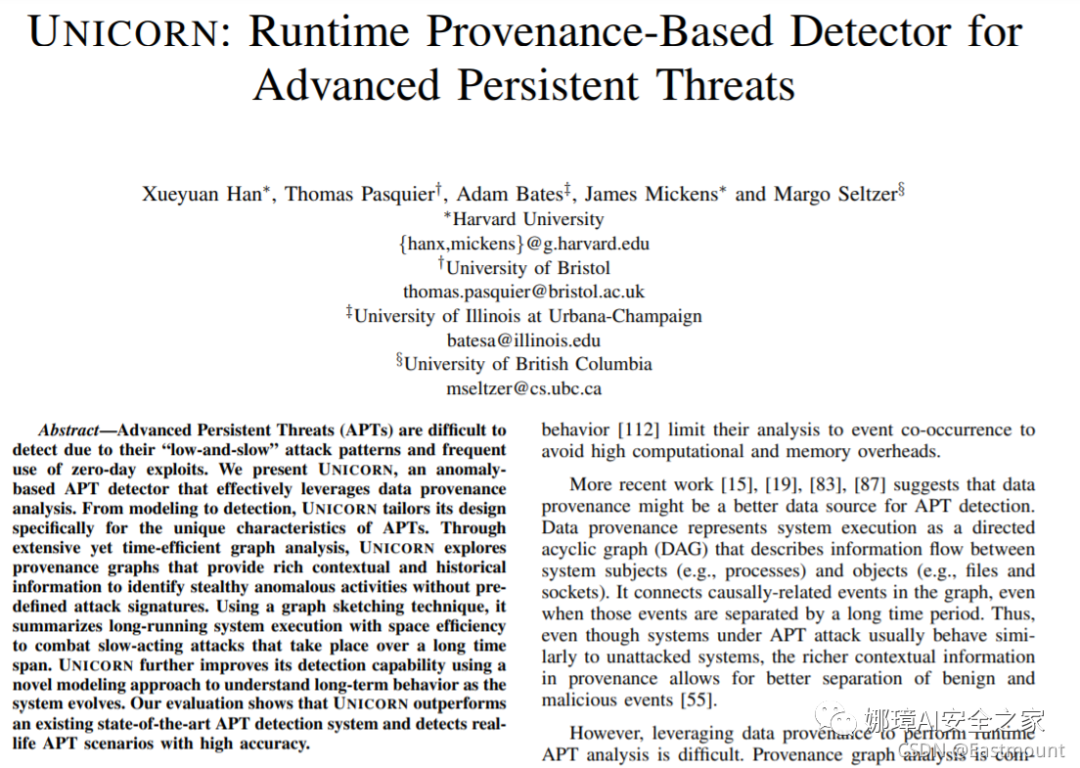[AI安全论文] 06.NDSS2020 UNICORN: Runtime Provenance-Based Detector for Advanced Persistent Threats