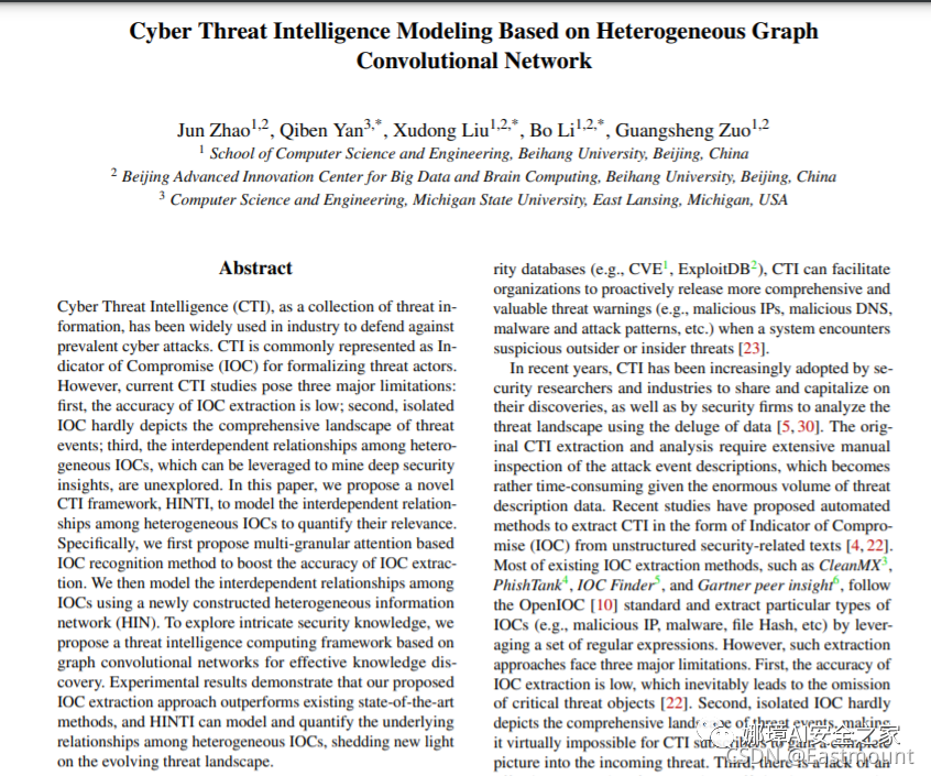 提出一种基于异构图卷积网络的威胁情报模型,建模IOC之间的依赖关系