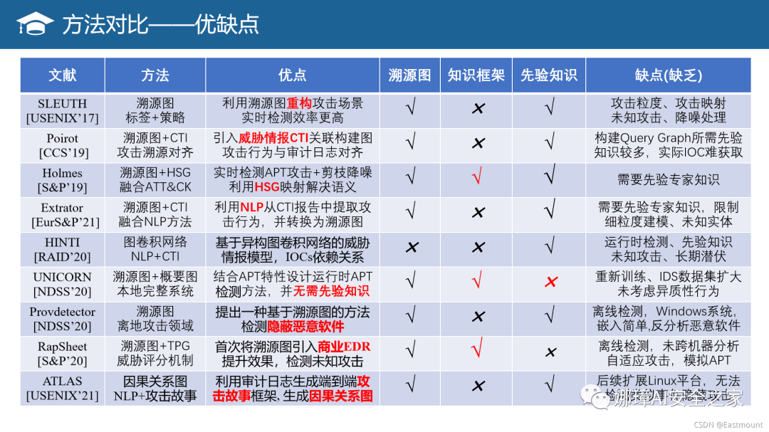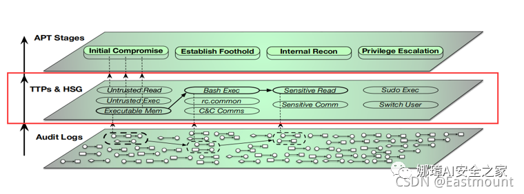 基于系统调用和日志事件的检测方法:由于数据过于密集,难以对长时间的攻击行为进行建模