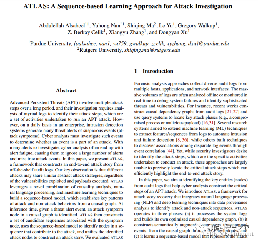 首次利用溯源图重构APT攻击,即利用因果关系跟踪和溯源图构造模型