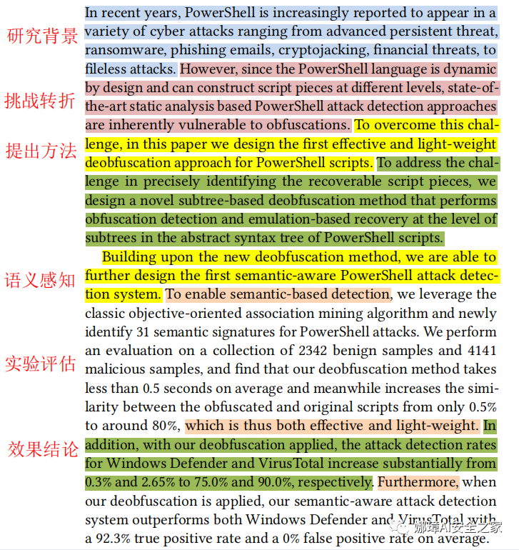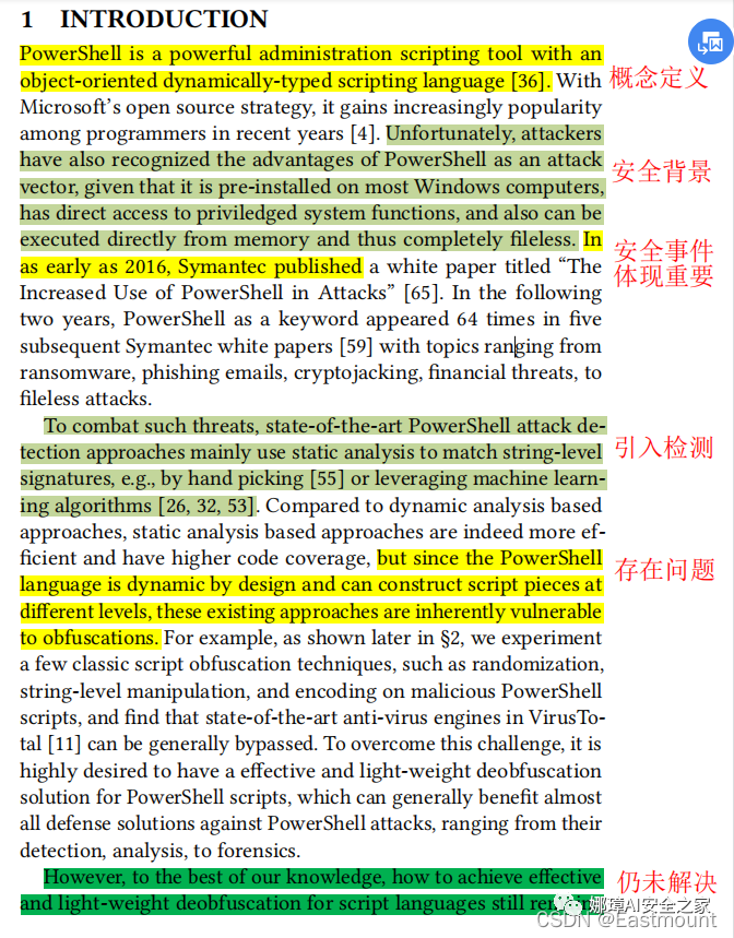 这篇论文的引言写得非常棒,有效突出了Powershell在网络攻击中的重要性,以及现有方法的诸多缺陷,进一步体现本文研究的必要性和贡献。