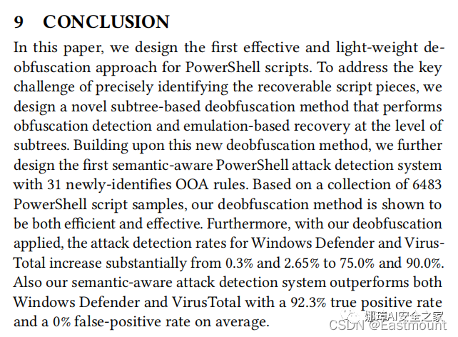 实现了第一个轻量且有效的PowerShell解混淆系统。有效的提升了解混淆后脚本的检测精度。