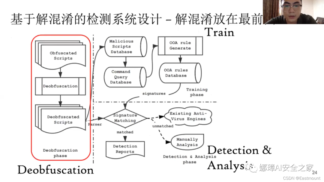 接下来简要介绍本文工作如何解决现有挑战,提出的方法。主要包括解混淆和攻击检测两块。
