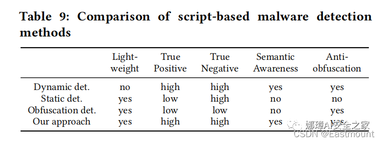 本文的重点是解混淆,解混淆后的代码其实语义比较丰富,其恶意检测也相对容易,所以仅选择了OOA。该部分应该是为了丰富整体的工作,让论文更加的充实和完整,或许也是审稿老师的修改意见。不过,确实很多顶会论文,包括攻防攻系列,漏洞挖掘防御系列,都会采用这种方式,从而让论文更加完美,值得我学习。