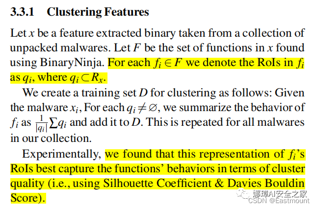本文模型方面主要是AutoEncoder实现半监督学习,能在少样本标注的情况下识别更多的恶意行为或类别,有效减少了分析人员的手工标注压力。同时,采用了HDBSCAN聚类,并利用PCA降维,这些都是很常见的模型。但整个模型的框架非常精彩(图2胜万语),并且融合了RoI detection和RoI annotation描述故事,故事讲得非常棒。ROI区域之前在做APP地图热点开发时经常使用,没想到在二进制领域也有这么好的表达,确实ROI一个词就能准确表示想做的工作。或许,这种跨方向或学科专业词汇值得注意。