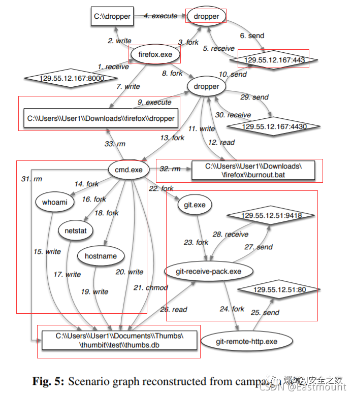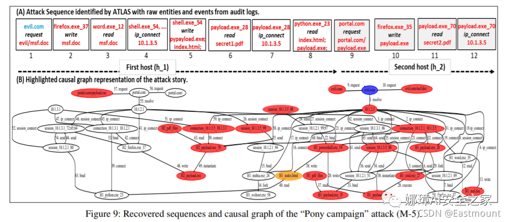 最后一篇是2021年USENIX的论文,作者仅作了简单的阅读。即 ATLAS。该文章来自普度大学团队,针对APT研究成果还包括NDSS’13的BEEP、NDSS’16的ProTracer等。此外,CCS21也发现了新的溯源图研究成果,说明基于溯源图的研究仍然是一个值得探索的方向。