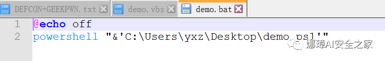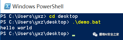 @echo offpowershell "&'C:\Users\yxz\Desktop\demo.ps1'"