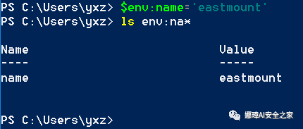 ls env:$env:windir$env:name='eastmount'ls env:na*