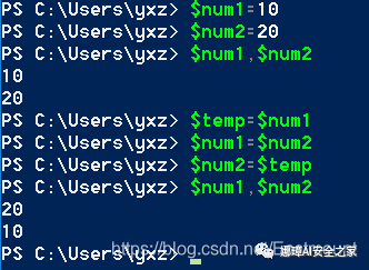 $num1=10$num2=20$temp=$num1$num1=$num2$num2=$temp$num1,$num2