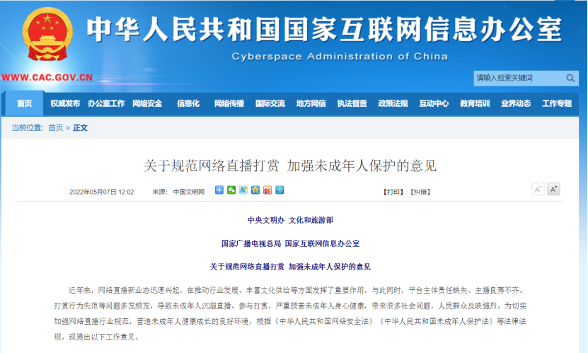 近日,中央网信办开展专项行动,严厉查处诱导未成年人参与直播打赏。前几个月,四部委联合发布《关于规范网络直播打赏 加强未成年人保护的意见》,其中取消打赏榜单和限制黄金档PK连麦的规定,让行业一阵哀鸣。