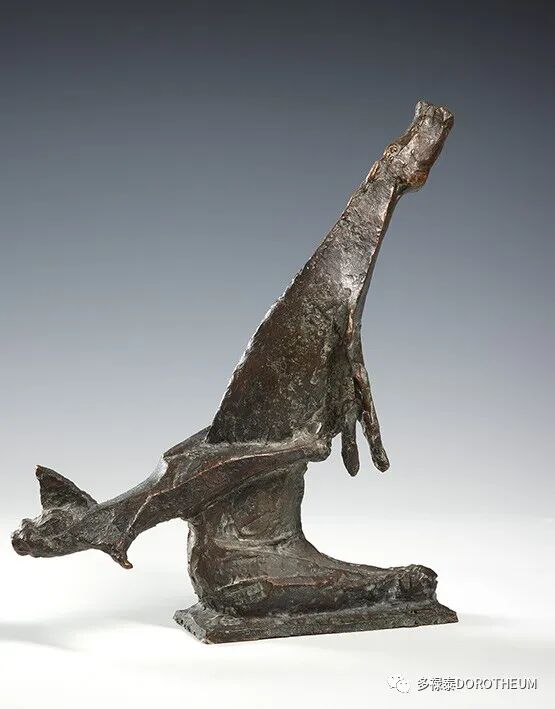 同样经历了战争的痛苦,不同艺术家的个人感受表达方式却不尽相同。意大利艺术家马里诺·马里尼(Marino Marini)被认为是二十世纪最杰出的雕塑家之一,与阿尔贝托·贾科梅蒂和亨利·摩尔齐名。他上面这件名为“奇迹”的雕塑展现的是嘶鸣的马和坠马的骑手。根植于古典主义并受立体主义和伊特鲁里亚艺术启发,马里尼发展了特有的古朴和抽象的简化风格。他用马和骑手的关系抽象有力地体现了人类无法抗拒的绝望和失控的环境。
