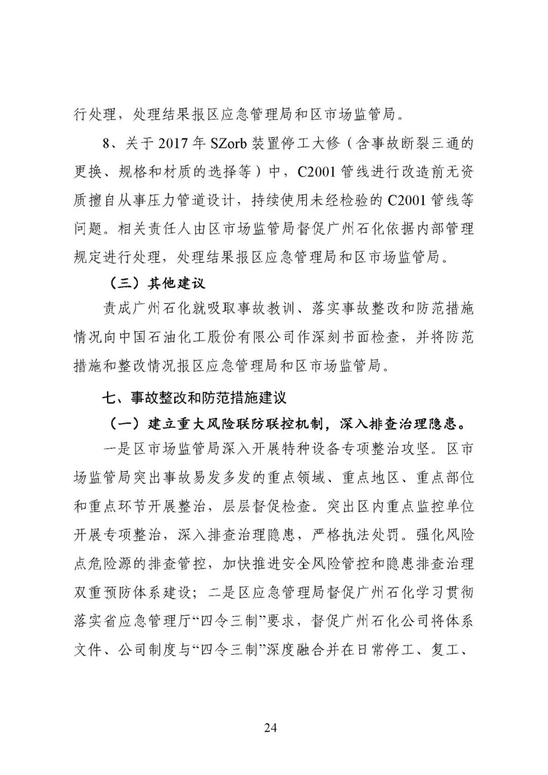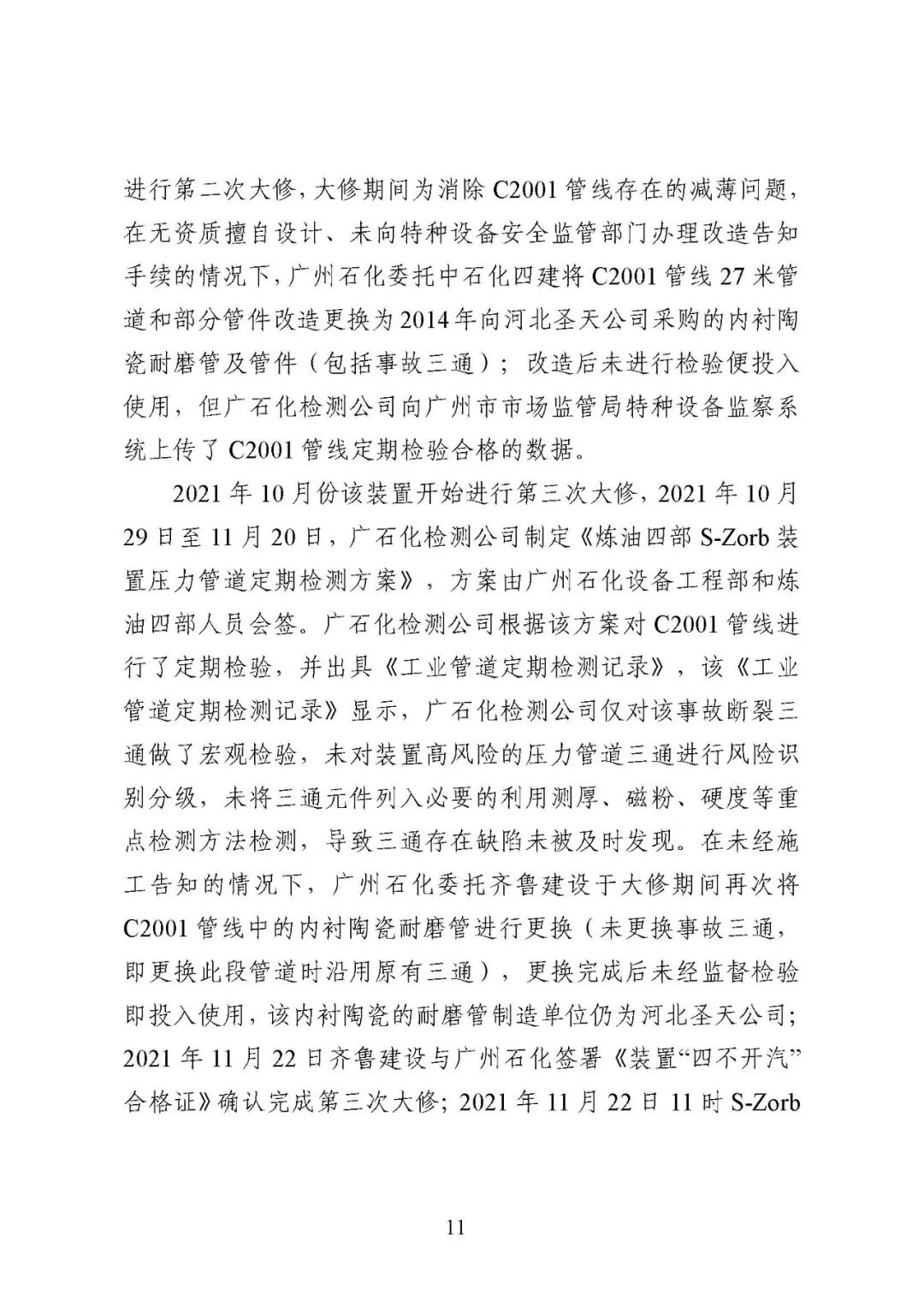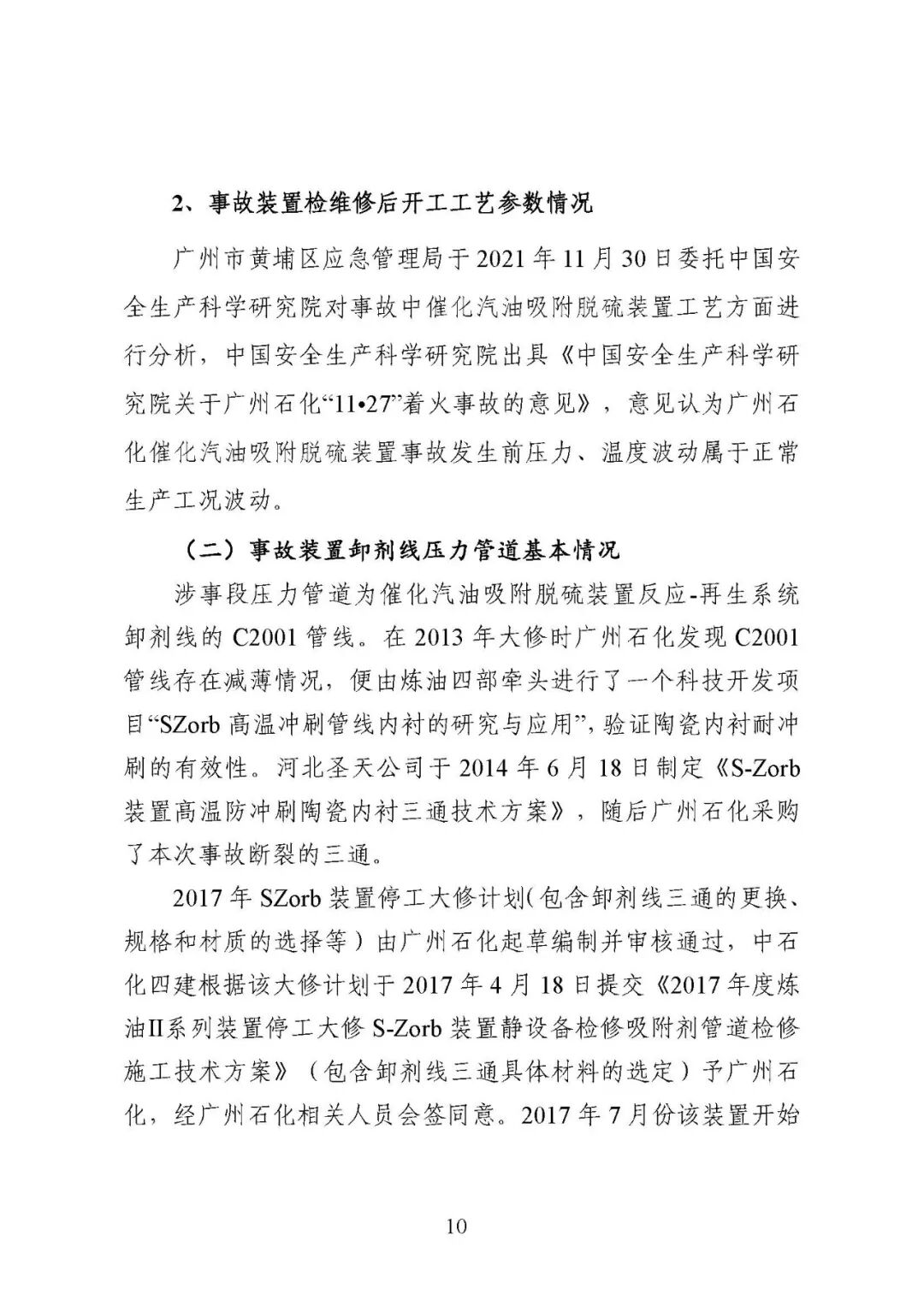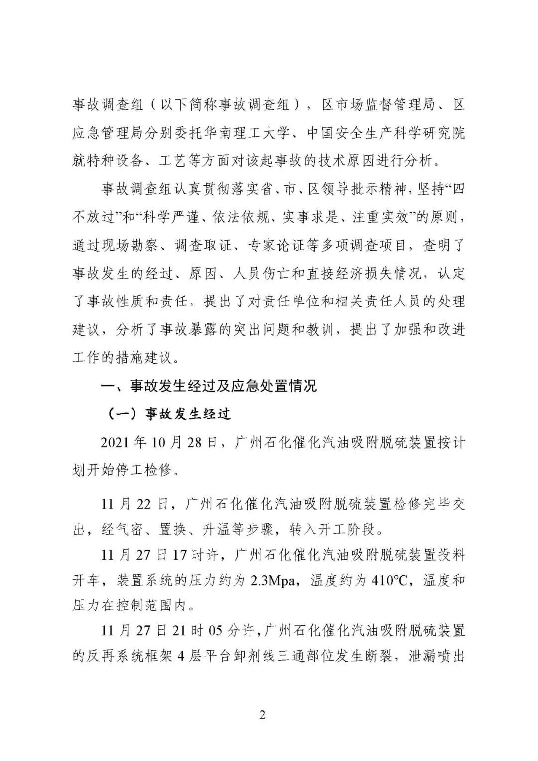2021年11月27日21时7分许,位于广州市黄埔区石化路550号的中国石油化工股份有限公司广州分公司(以下简称广州石化)催化汽油吸附脱硫装置(又称 S-Zorb 装置)的反再系统框架4层平台卸剂线发生泄漏着火。事故未造成人员伤亡,直接经济损失24.万元。