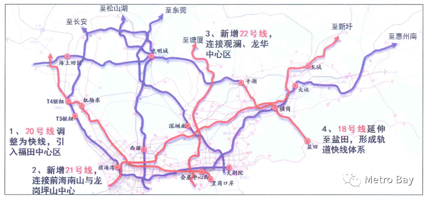 如何评价最新公开的深圳地铁五期规划?在本期推文中,Metro Bay为大家总结了深圳地铁五期规划的四大亮点: