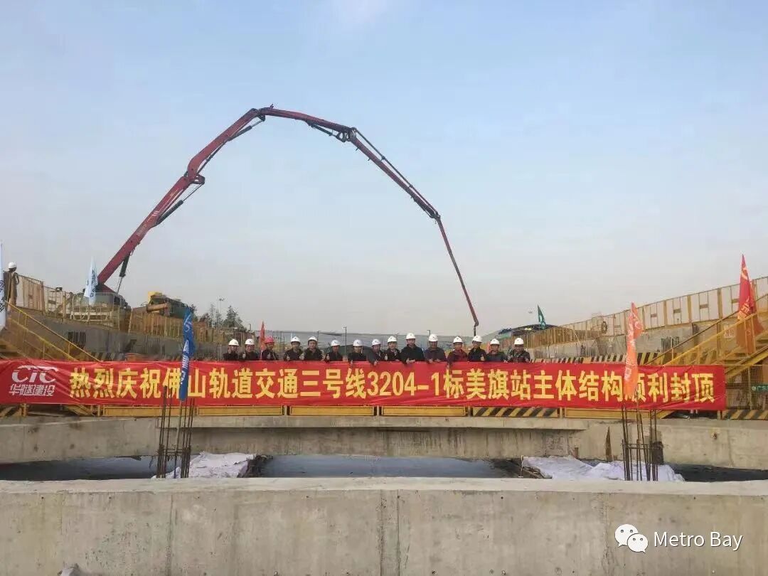 顺德学院站主体结构封顶,标志着3号线首通段所有车站全部封顶。