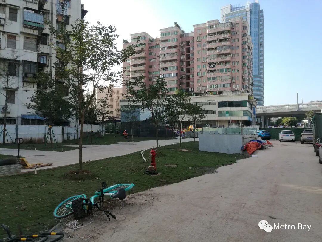 G和F出入口之间的小公园,前方是一个风井