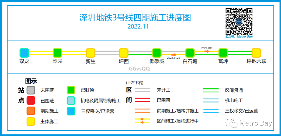 上期进度图:深圳地铁在建线路建设进度图【2022年10月】
