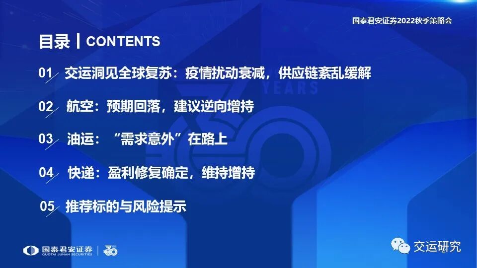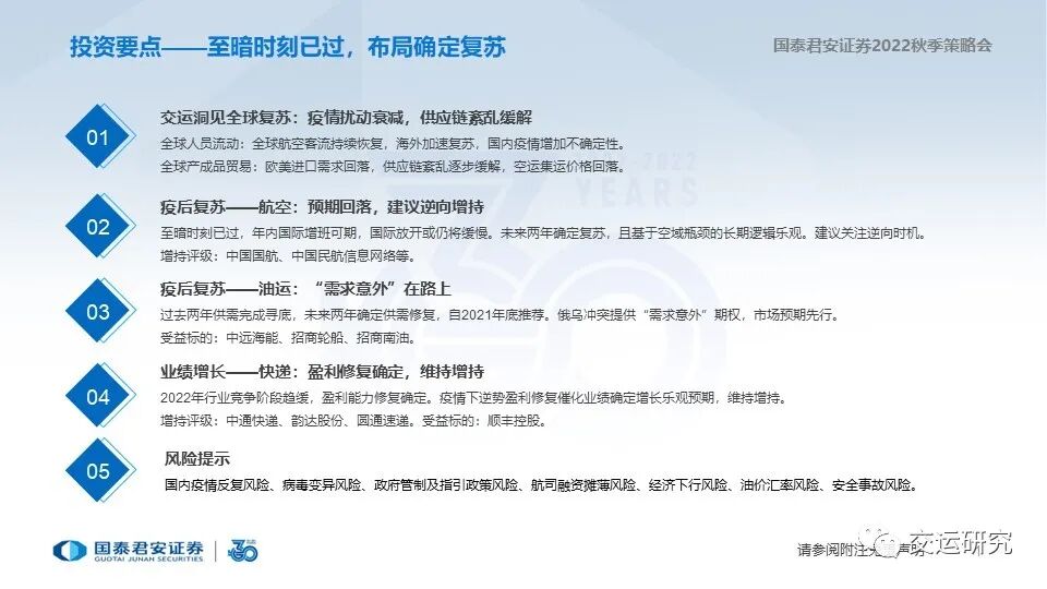 国君交运|2022年秋季策略:至暗时刻已过,布局确定复苏