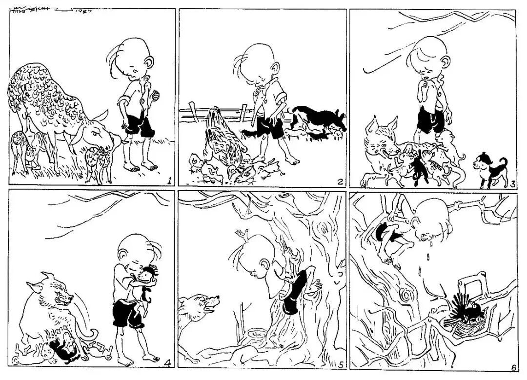 随后一年,《三毛流浪记》在《大公报》连载后,广受好评。人们的心被这个可爱又悲惨的小男孩牵动着的同时,张乐平的艺术事业也被推到了顶峰。死于寒夜的孩子打破了市井的宁静,似是用生命在呼唤:“三毛,该回‘家’了!”