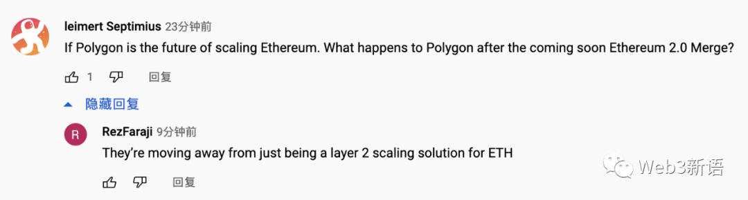 小新在某视频网站上搜索Polygon资讯时看到了一条评论,觉得可以和大家一起探讨(下图)。