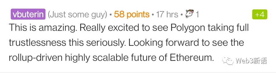 小新觉得大家可以对Polygon的ZK战略持乐观态度,毕竟连V神都在社交平台上对Rollup驱动的以太坊高度可扩展的未来表示了期待。