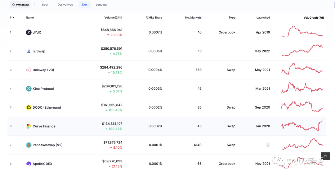 现在,是包括 Uniswap 在内的去中心化交易所(Decentralized Exchange,DEX)的主场。DEX是运行在区块链上的,它们大多基于以太坊网络,另外也有许多基于其他区块链的小众 交易所这里不再列举。