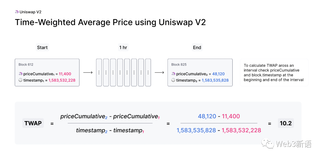 V2还在智能合约中设定了时间加权平均价格(TWAPS)的变量,该变量是将累积价格(持续时间内每个区块的代币价格)除以时间戳持续时间以计算一段时间内的平均价格。TWAPS能够缓冲因崩盘和价格剧烈波动带来的影响,价格操纵的成本也会随着流动性的提升与平均时长的增加而增加。