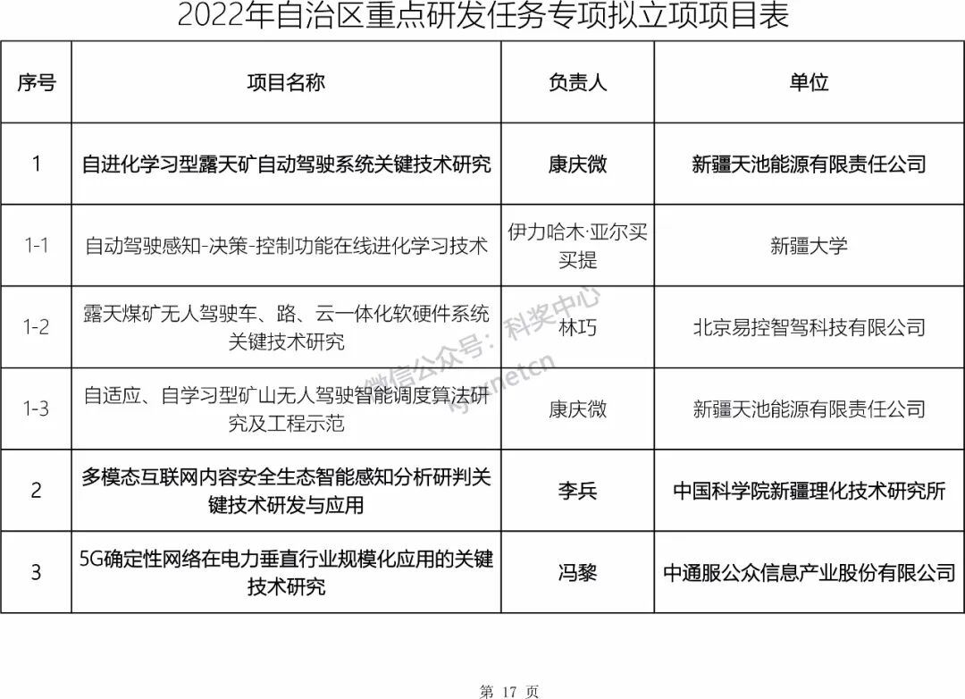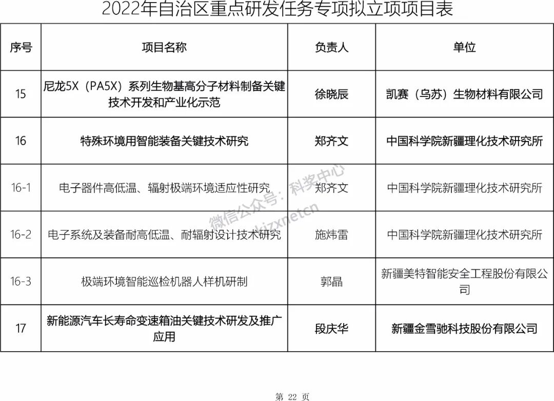 根据《自治区科技计划项目管理办法》《自治区科技计划项目管理办法实施细则(暂行)》有关要求,现对2022年自治区重大科技专项、重点研发任务专项拟立项项目进行公示。