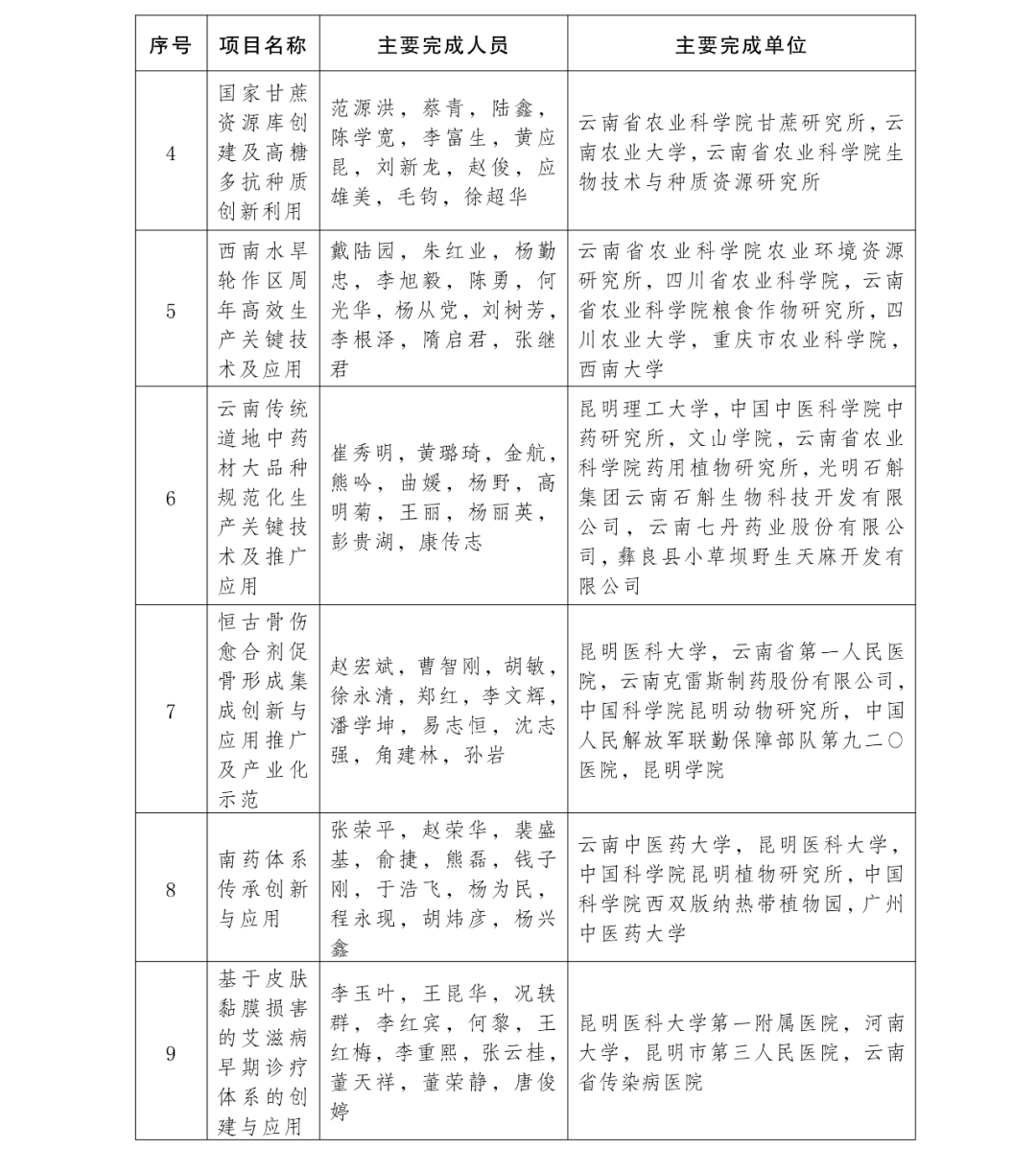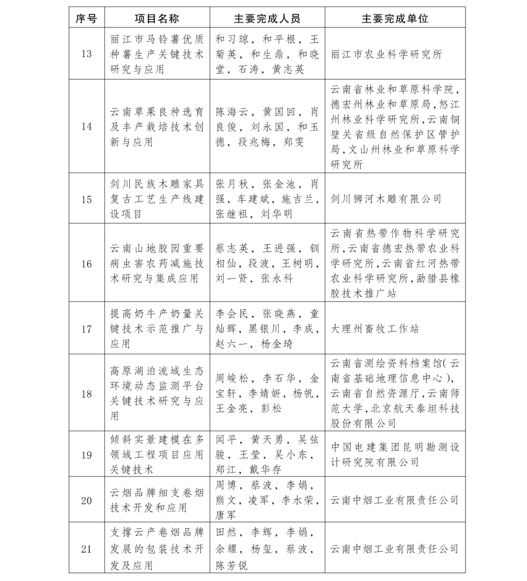 附件:2020年度云南省科学技术奖励项目(人)名单